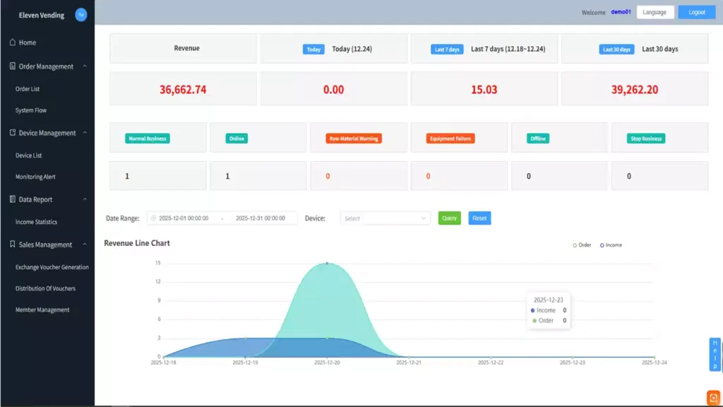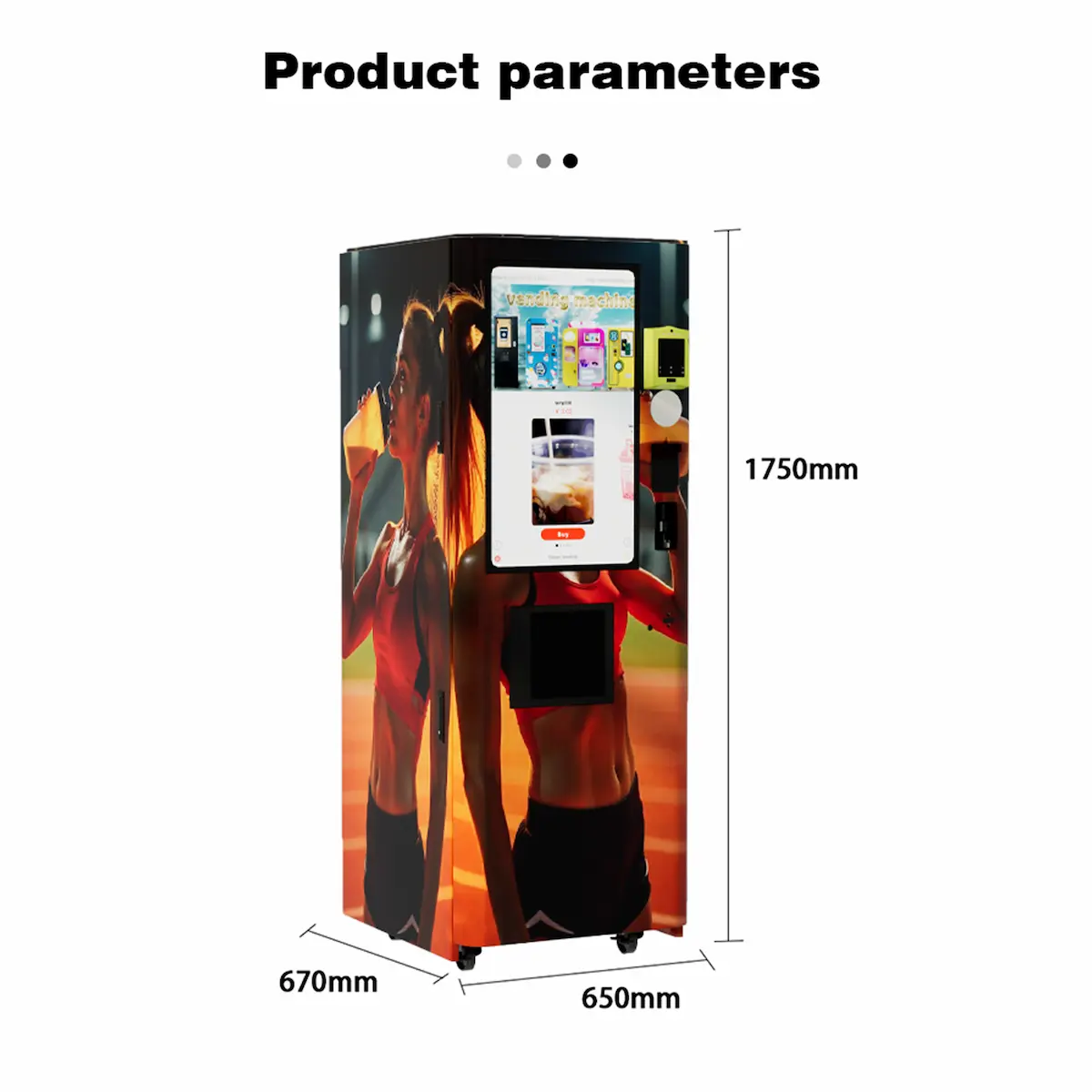 | Payments | Customizable: Bank Card, Cash (Bill/Coin), QR Code, Mobile Pay ( Nayax, etc.) |